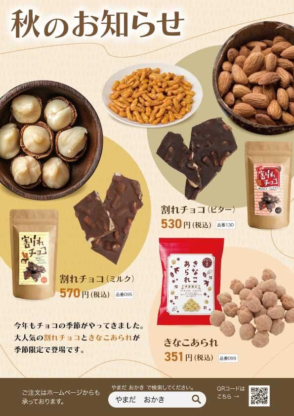 きなこあられ、割れチョコの今季の発売を開始しました。