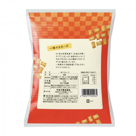 もち米(佐賀県)、マヨネーズ(卵・りんごを含む)、粉末酢、卵黄(卵を含む)、マスタード、砂糖、塩、酵母エキス、一味唐辛子(島根県)