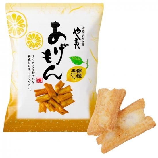 米油で揚げたおかきをあっさり醤油で味付けしました。 瀬戸内のレモン果汁がさっぱりした味わいです。 ふわふわサクサクの食感です。