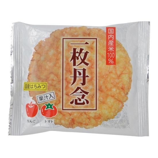 個包装の一枚丹念を6枚、袋入りにした商品です。うるち米と相性の良い米油でカラッと揚げています。 醤油ベースで、隠し味の国産はちみつ、りんご果汁、トマト果汁がやさしい甘さ。 弊社の大人気商品です。