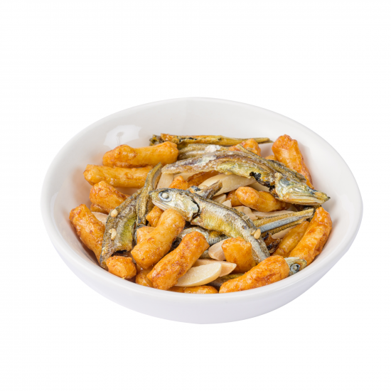 あられは国内産100%のもち米使用。 化学調味料無添加。 アーモンドフィッシュに無添加あられをプラスしました。