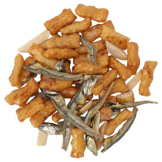 片口いわし(国産)、砂糖、しょうゆ(小麦・大豆を含む)、ごま、鰹節、昆布、煮干、乾しいたけ、香辛料